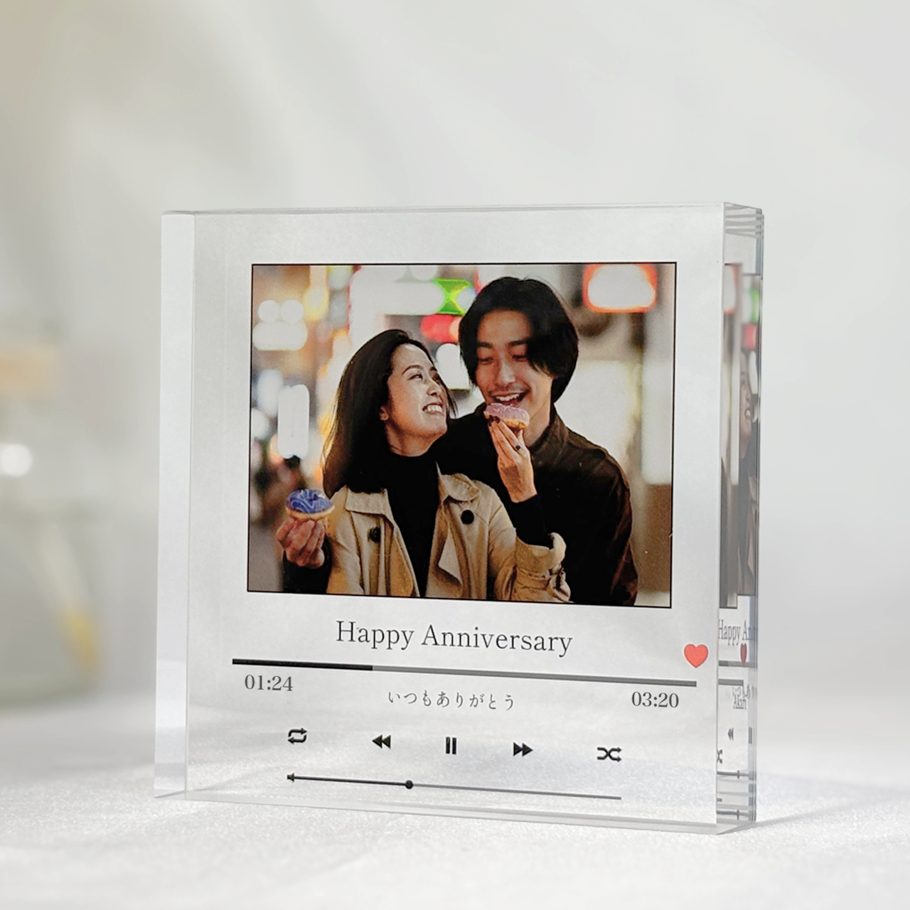 アクリルブロック アクリルキューブ フォトフレーム オリジナル 七五三 写真立て 出産内祝い 出産祝い 還暦 還暦祝い 古希 古希祝い ウエディング結婚 結婚祝い 卒園 卒業 退職 名入れ 写真 プレゼント ペット インテリア ミュージックデザイン -LYLY - プレゼント。