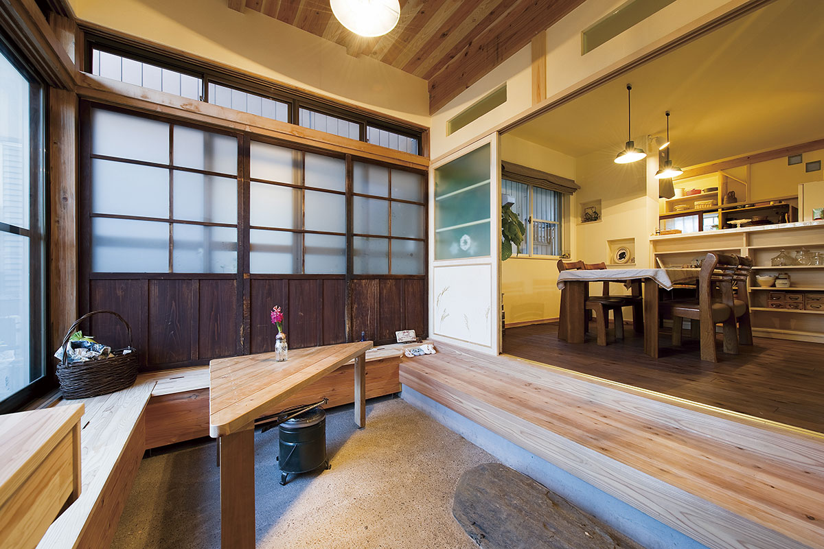 2枚目土間 古民家カフェみたいな日本家屋リノベーション 下戸山の家リノベーション- リビングダイニング事例SUVACO スバコ。