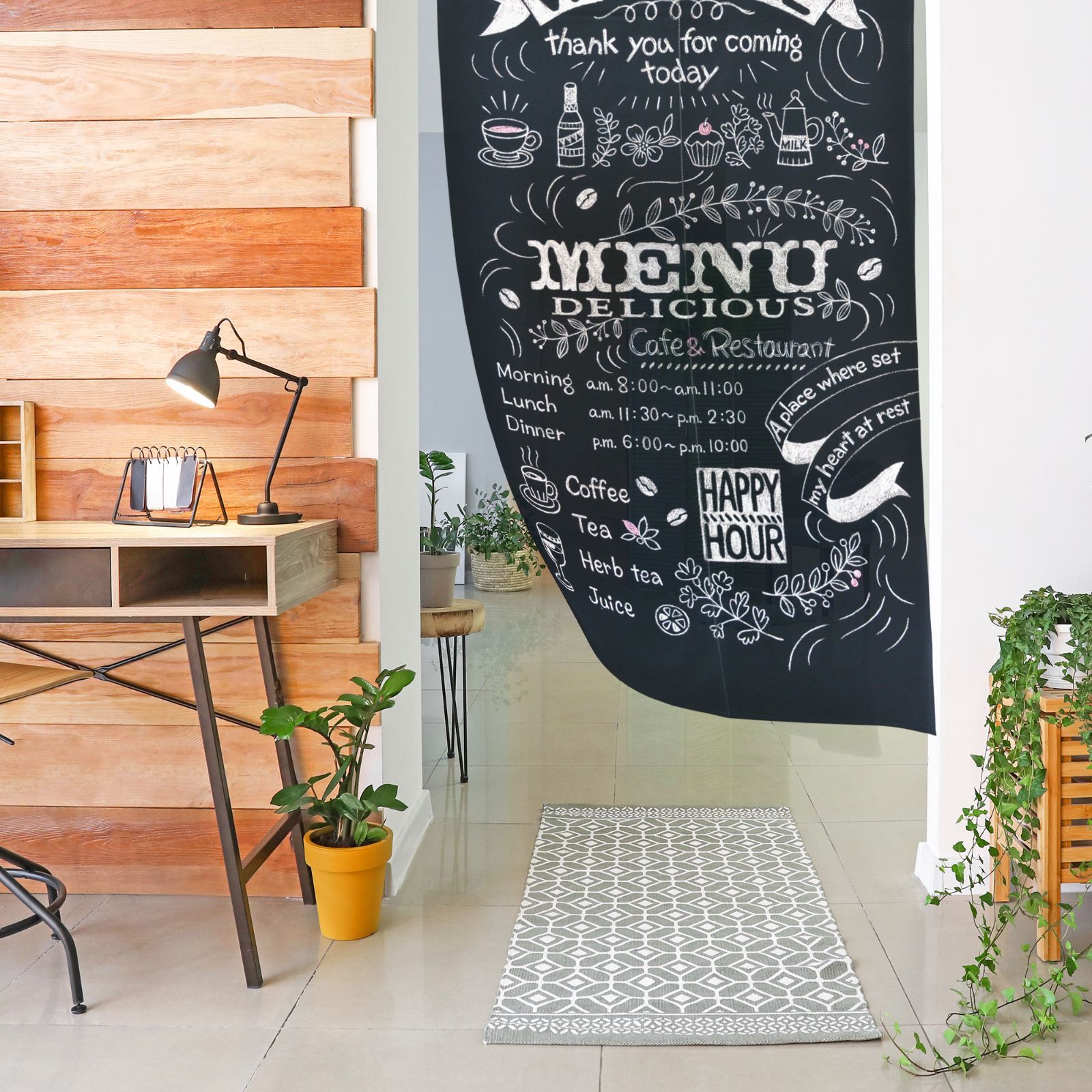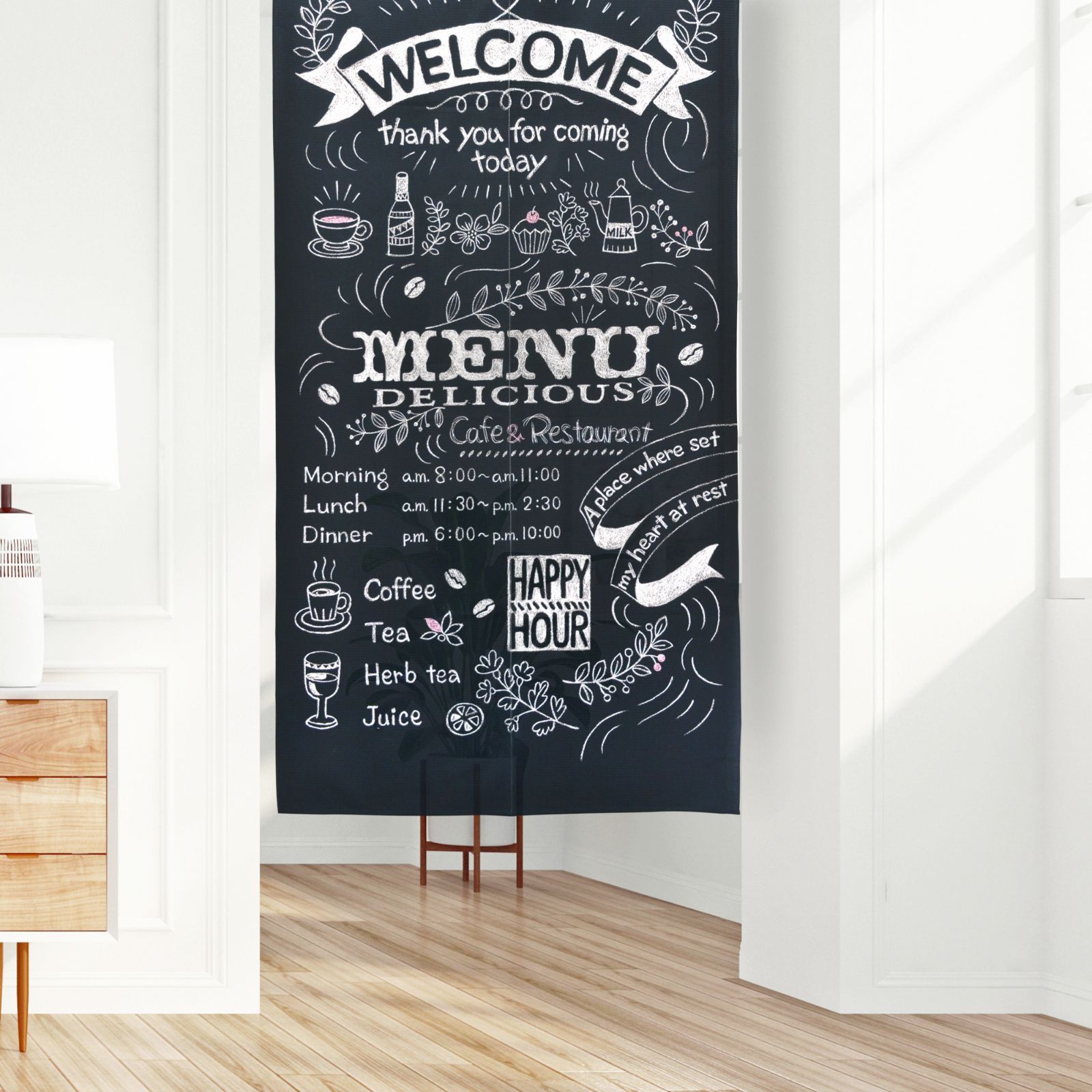 のれん 暖簾 おしゃれ カーテン 間仕切り 仕切りカーテン 目隠し ロング アメリカン インダストリアル ブルックリンスタイル 英語 英字 黒板カフェ風 メニューボード チョークアート ハンバーガー 85×170cmの通販はau PAY マーケット - エヌズファーニチャー au PAY。