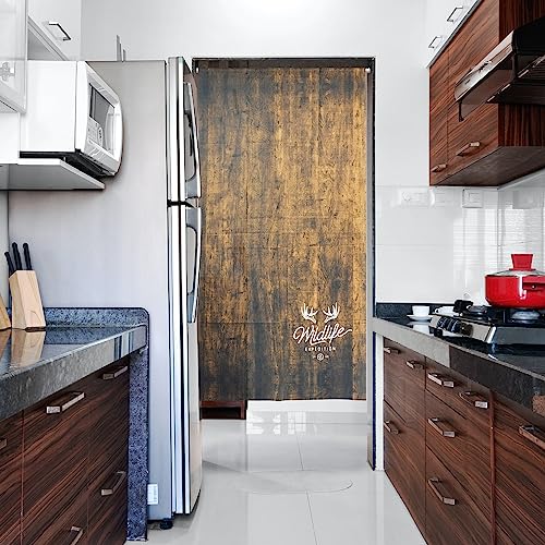 のれん 暖簾 おしゃれ カーテン 間仕切り 仕切りカーテン 目隠し ロング アメリカン インダストリアル ブルックリンスタイル 英語 英字 木目ウッドパネル ハンティングトロフィー ヴィンテージ 巾85cm 丈170cmBSizeee。