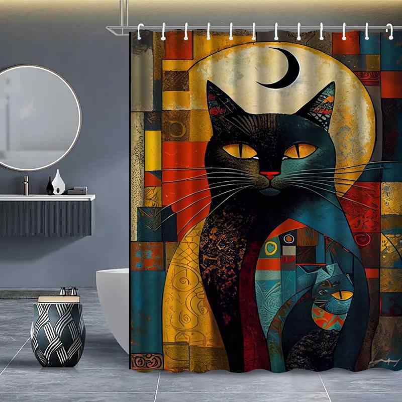 シャワーカーテン 防水 防カビ アニマル柄 ヨーロピアン レトロ インダストリアルデザイン ポリエステル製 ファブリック バスルーム用 おしゃれ間仕切り インテリア 新品 シャワーカーテン 猫 防水 防カビ 洗える 目隠し 可愛い ユニットバス お風呂カーテン バス用品 海。