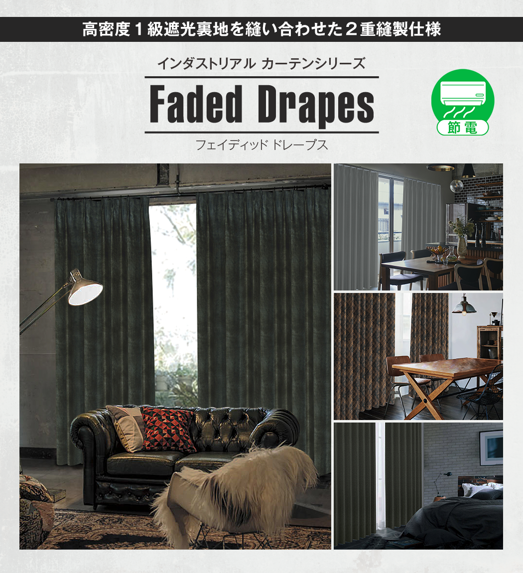 インダストリアル 1級遮光カーテン「Faded Drapes」カーテン通販 カーテンくれないWeb本店。