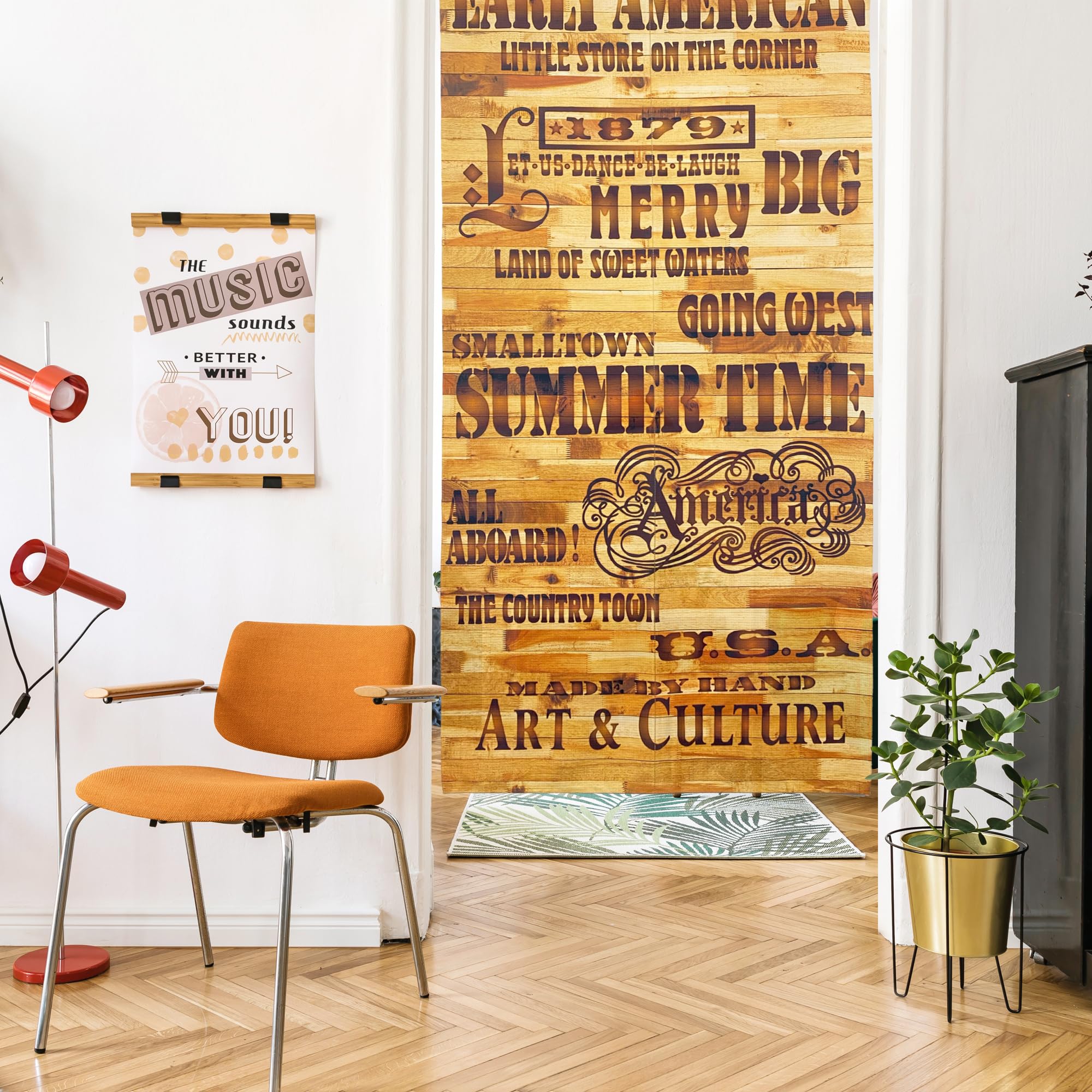 Amazon YXSNGのれん 暖簾 100*190cm おしゃれ ロング アメリカン インダストリアル ブルックリンスタイル 英語 英字norenn カーテン 間仕切り 仕切りカーテン スクリーン タペストリー 目隠し ウッド調 木目調 かっこいい カラー4 クール ヴィンテージ。