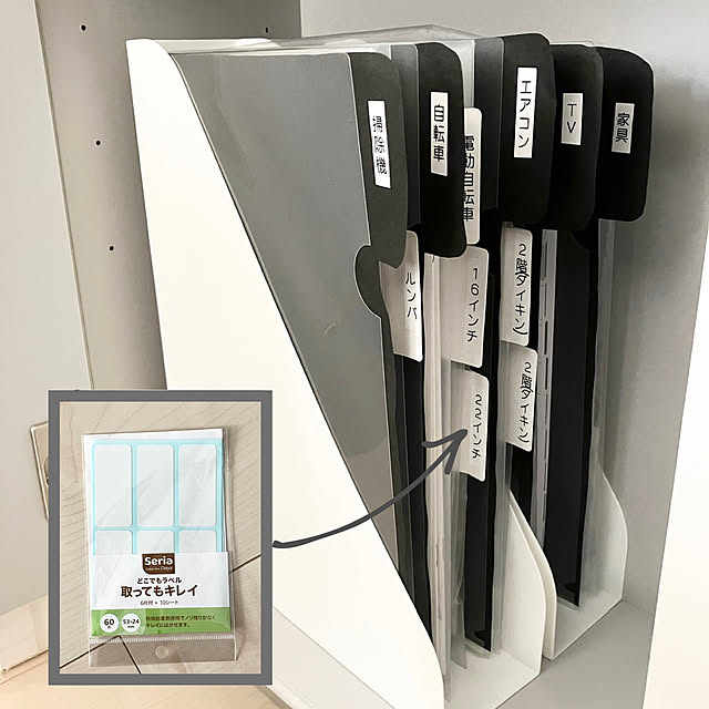 セリア購入品 100均にもあった!白黒が嬉しいPP製個別フォルダー片づけものさし。