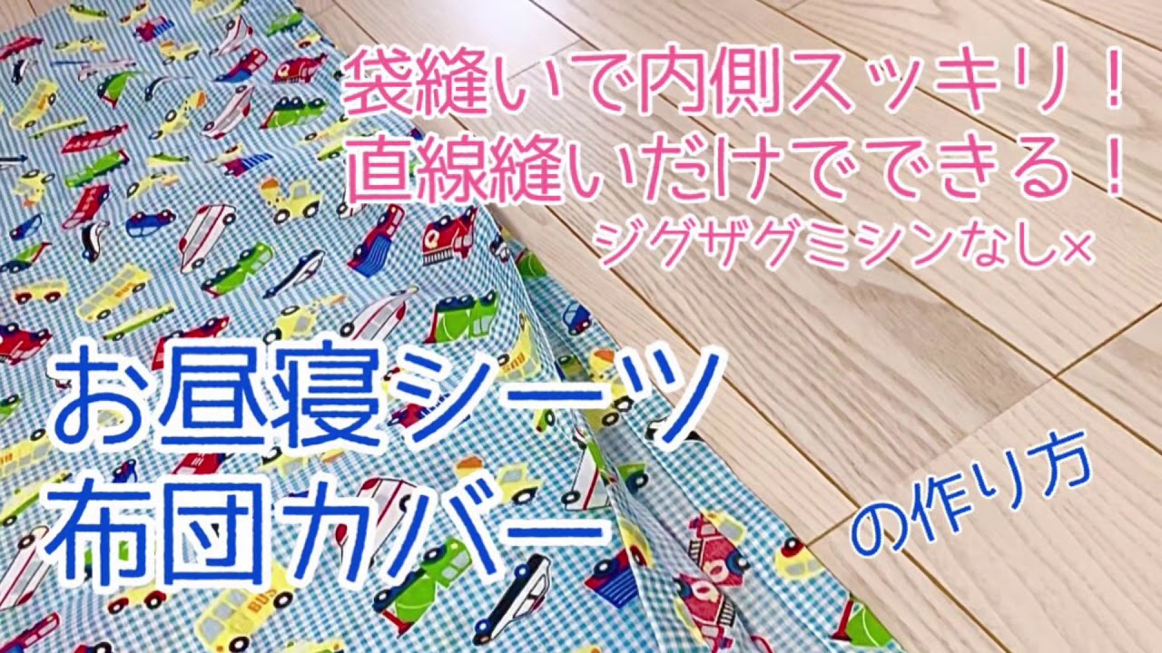 簡単!面ファスナーお昼寝シーツ 布団カバー ジグザグミシンなし!内側スッキリ!マジックテープで開閉簡単! - YouTube。