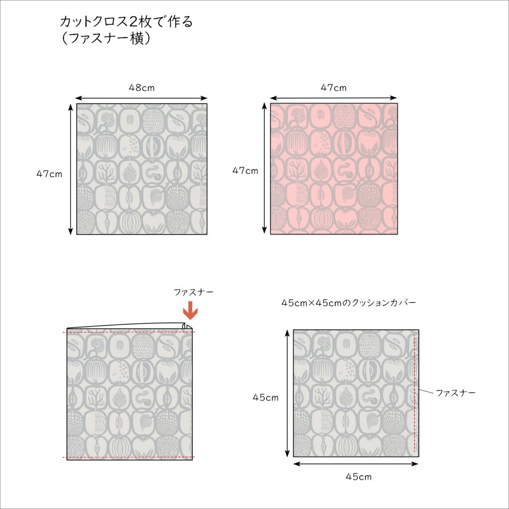 作り方 ファスナー付きクッションカバー 2枚の生地で作る45cm×45cmわが家のここち。