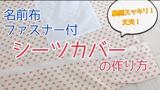 お昼寝シーツファスナー、内紐、名前布、ジグザグミシンなしの袋縫いで内側スッキリ簡単きれい。