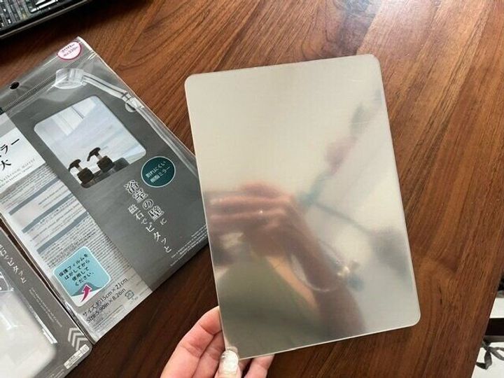 ダイソーのバスルーム用ミラー大が秀逸!磁石で浴室の壁にくっつく。
