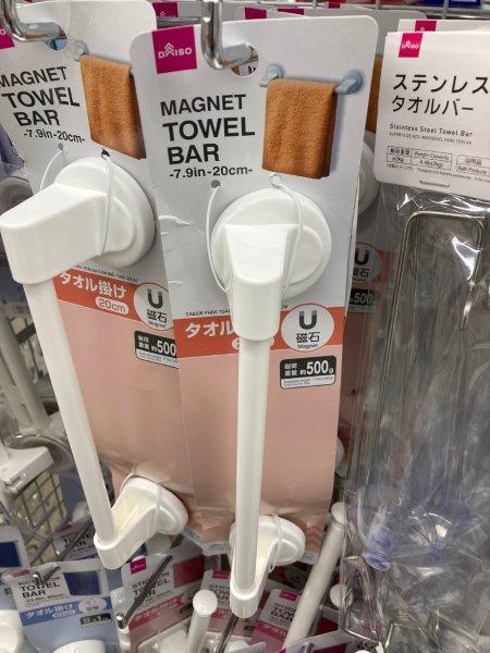 ダイソー浴室の壁用 磁石でくっつくタオル掛けの使い勝手は?ニトリと比較。