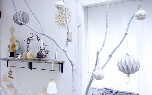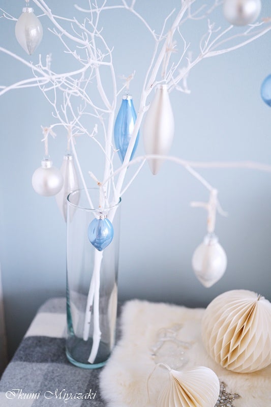 枝ツリーで簡単クリスマスツリー☆IKEAのオーナメントつけました白いお家のブログ。