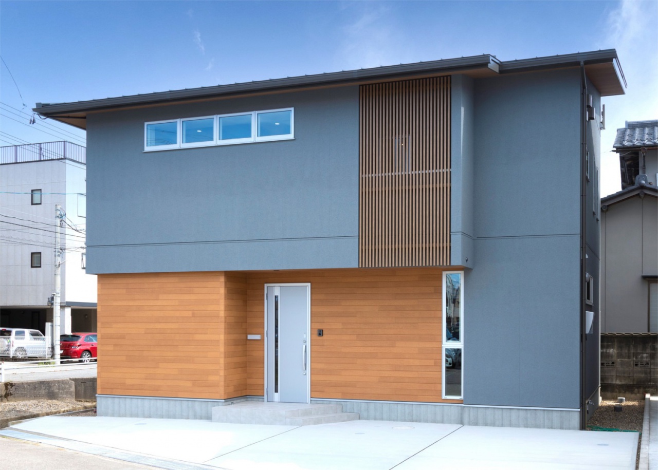 外壁の木目調アクセントでおしゃれな家づくり♪実例に学ぶデザインテクニック福井の注文住宅・工務店ノークホームズ。
