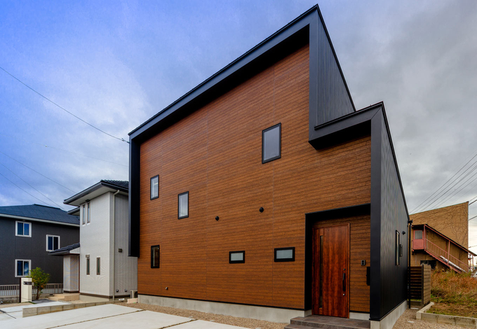 ビターブラウンの木目調外壁が目を引くモダンな住まい山口建設 〜Yamaguchi Design〜 浜松・磐田の新築 注文住宅の工務店。