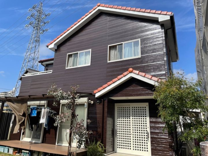 木目調サイディングをブラウンカラーで無機塗装!高耐久で安心! 愛知県安城市 H様邸愛知県安城市、西尾市の塗り替え屋本舗 700施工事例 安城市、西尾市の外壁塗装&屋根TVCMでお馴染みの塗り替え屋本舗。