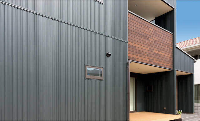 金属と木目の調和を楽しむ施工例ニチハ株式会社。