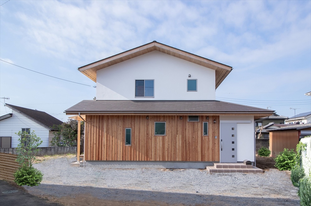 群馬県太田市の施工事例 木目調のサイディングが調和した、白い塗り壁のお家工務店を探すなら いい家ネット。