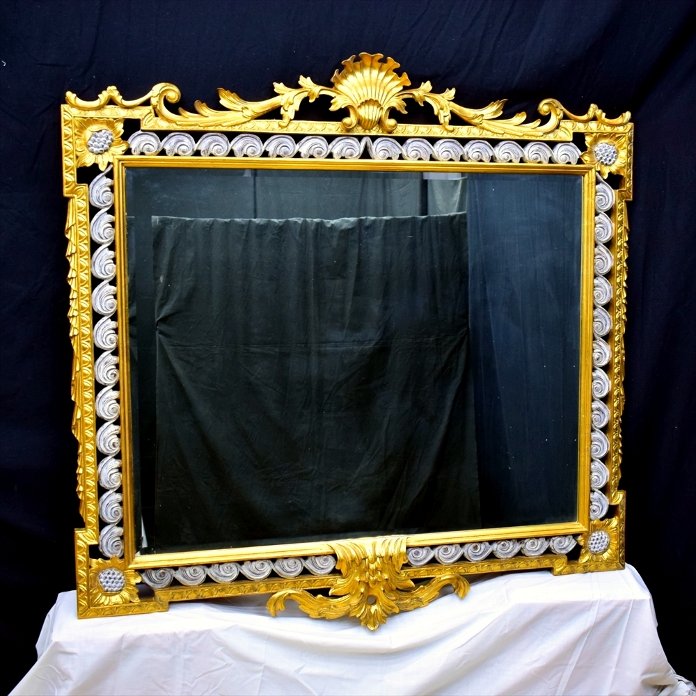 ロココ調 大型鏡 アンティーク ミラー ロココ調 ウォールミラー 壁掛け 鏡 アウトレット。