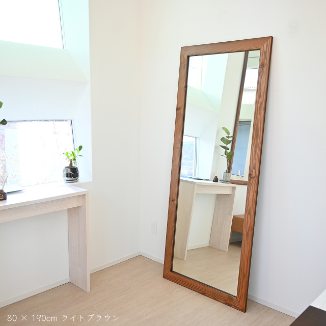クロノスミラー W800×1900 ウォールミラー 壁掛け 全身 鏡 アンティーク調 天然木 日本製 ライトブラウン。
