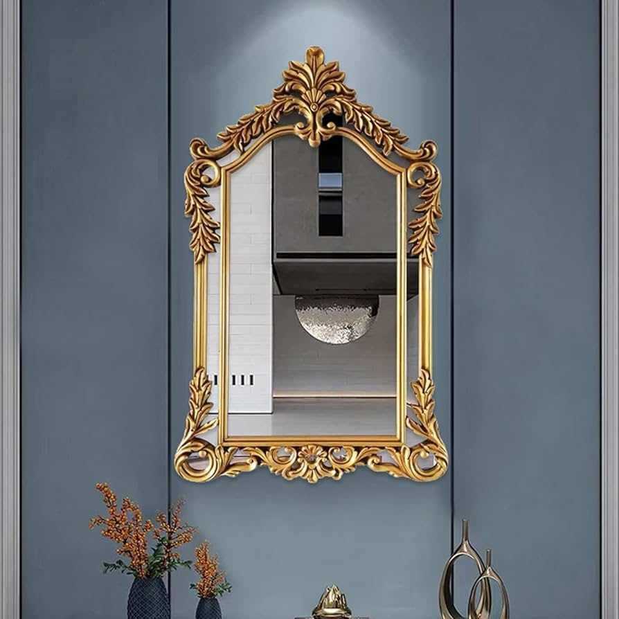 ドレッシングミラー 壁掛け用大型ミラー 装飾ゴールド レギュラー装飾壁掛けミラー 金属フレーム付き リビングルーム バスルーム 寝室ゴールドヴィンテージミラー - 華やかなアンティークビクトリア朝の化粧台、フレンチバロック調の壁掛け、リビングルーム、寝室。