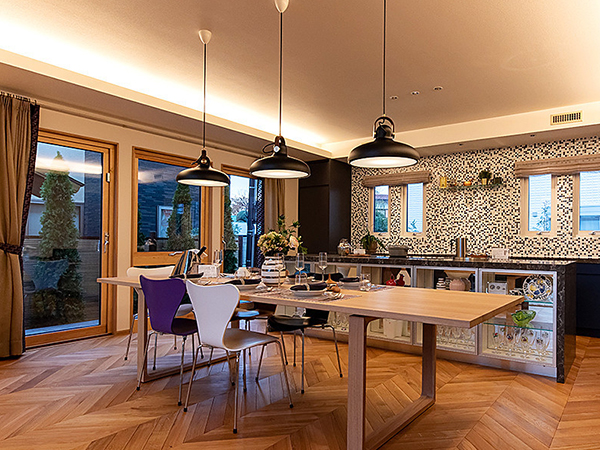西洋風の重厚感あるリビング・ダイニング 羨望の洋館邸宅重量木骨の家。