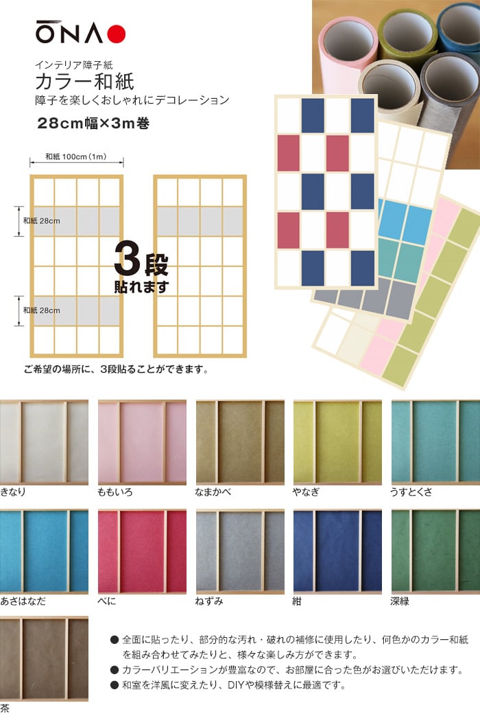 インテリア障子紙 カラー和紙 28cm×3mDIYショップRESTA。