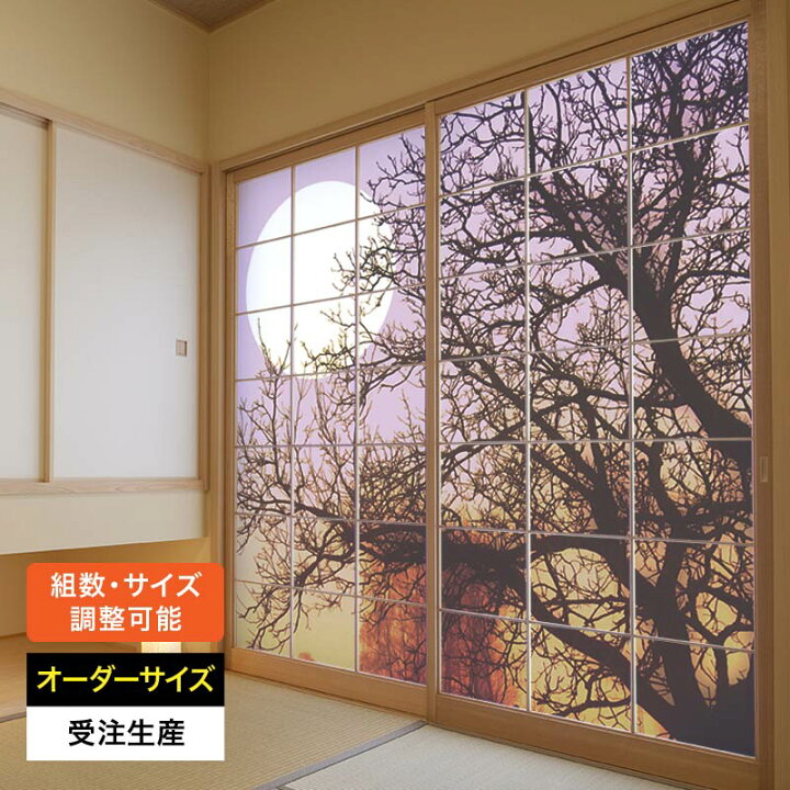 楽天市場 障子紙 おしゃれ モダン 和モダン かわいい 破れにくい 強化 サイズ オーダー 和 和柄 和風 カラー 和室 窓 障子 貼替え 張替えデザイン 影絵 シルエット月の灯り パープル: デザイン・柄障子紙のゆめあり。