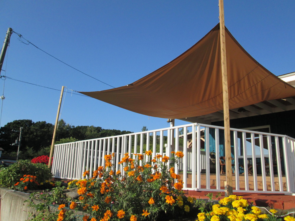 テラスに日よけのオーニング・タープ・サンシェードを設置して日差し対策! 福島市で新築外構・エクステリアならグリーンライフ株式会社グリーンライフのニュースまいぷれ 福島市。