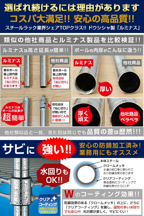 楽天市場 ルミナス 公式 パーツ 部品 ポール 延長ポール 高さ15 柱 2本セット ライト専用 追加 スチールラック ラック ポール径 19mmおしゃれ 業務用 収納 収納棚 棚 隙間収納 ハンガーラック ワイヤーシェルフ スチールシェルフ パイプラック ADD-1915 : ラック・照明。