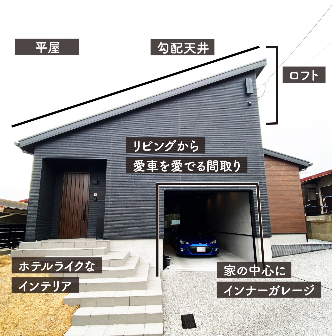 ルームツアー 施工実例 インナーガレージをセンターに配置したモダンな平屋 くつろぎのリビングから愛車を愛でる理想のLDK悠悠ホーム福岡・熊本・佐賀のハウスメーカ。