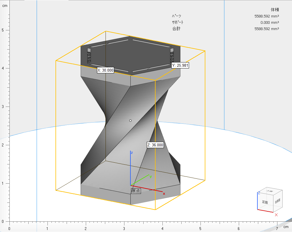 内部の見えるねじれた六角形のオブジェ制作事例。