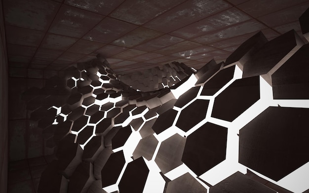 六角形が配置された六角形の構造物の白黒写真。Premium写真。