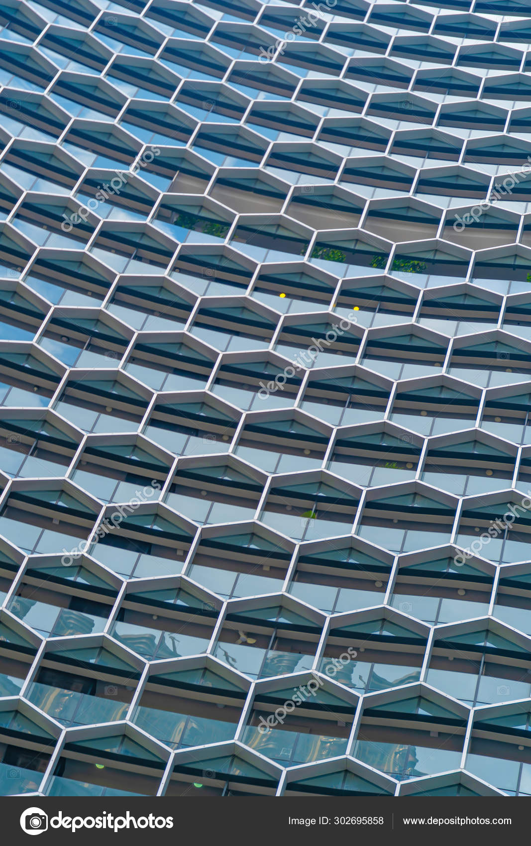 オフィスビル。未来のテキサクの六角形の窓の構造 — ストック写真 © [email protected]。