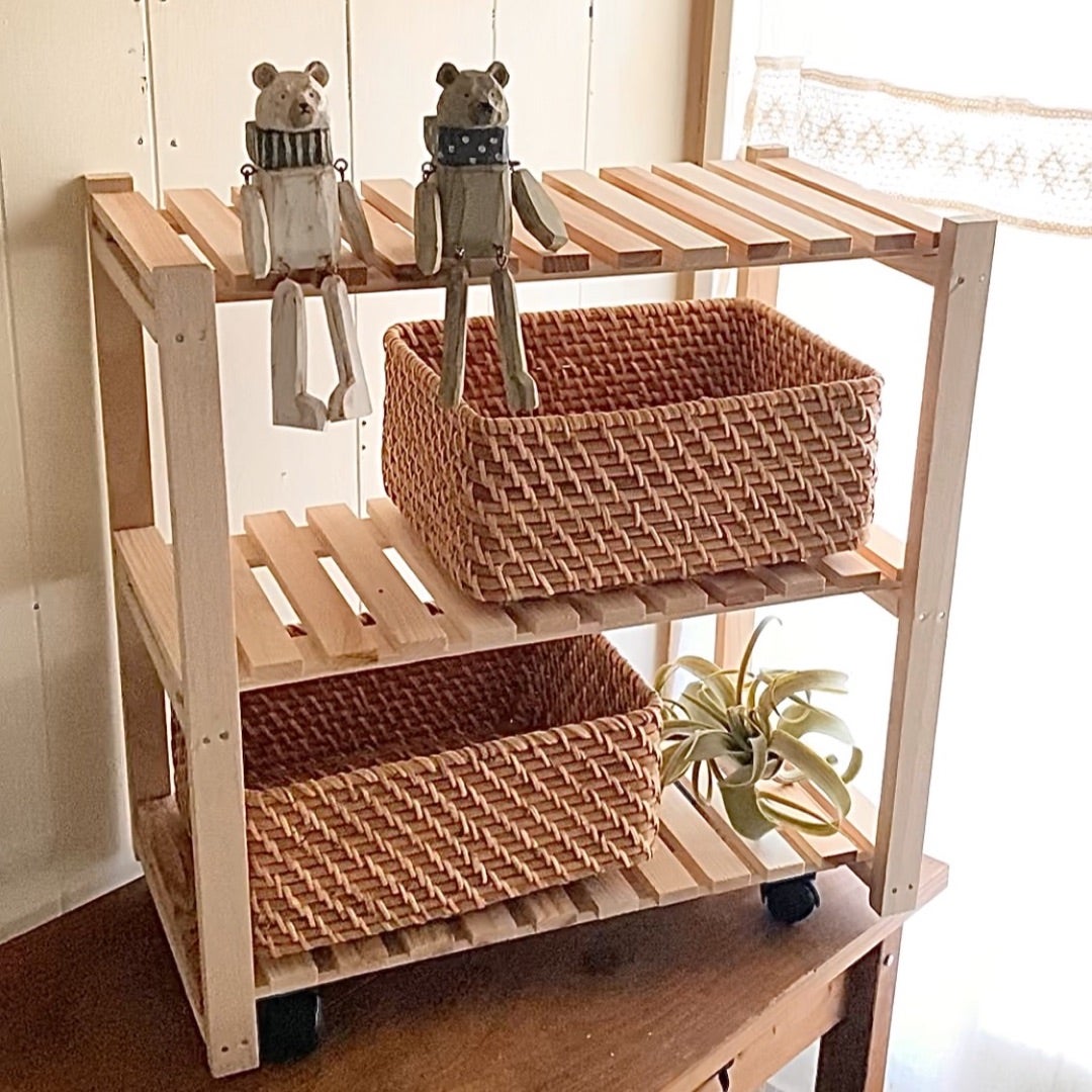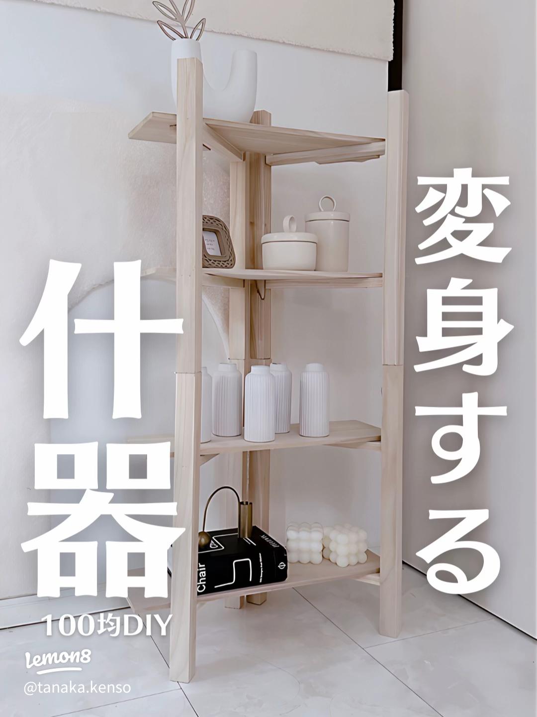 セリア ドライバー1本と100均素材で作る折りたたみヒノキ多段シェルフ DIY棚。