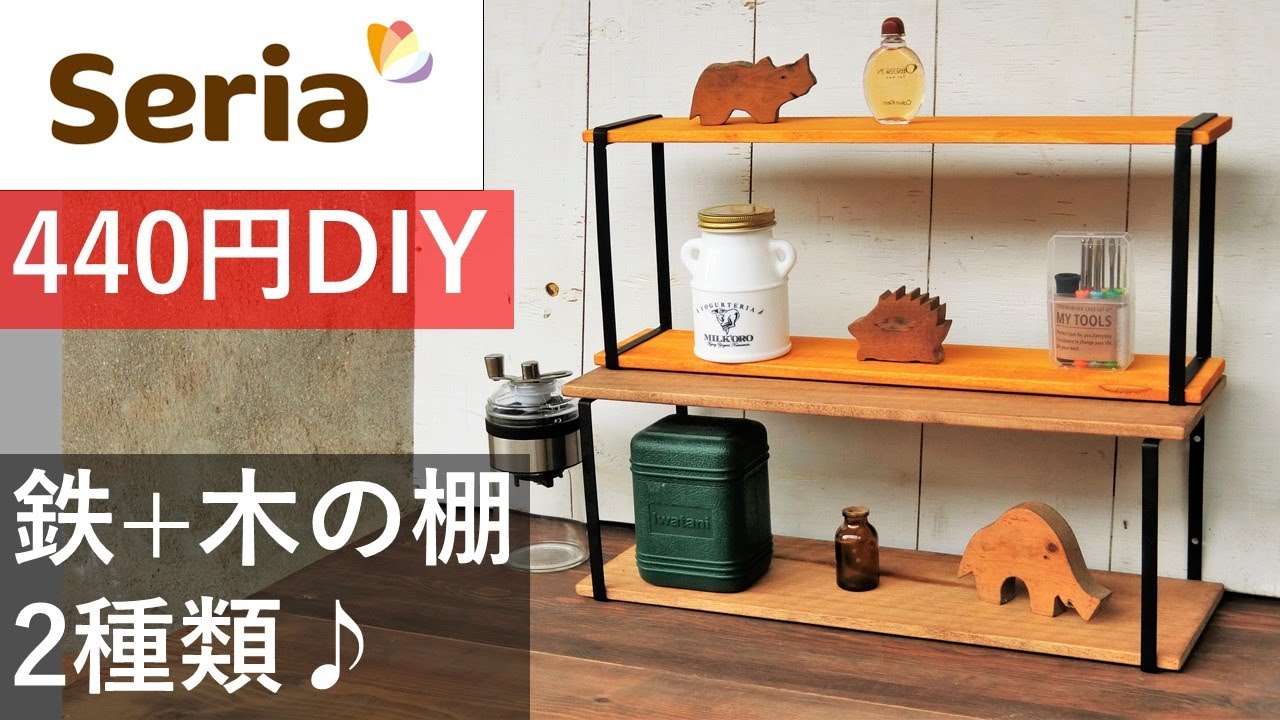 「誰でも簡単DIY」セリア440円!アイアンパーツと木板でつくるオシャレな棚、2種類♪。