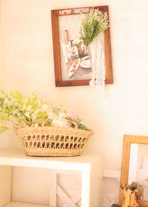 大阪発☆収納とインテリア「roseleaf」: リメイク☆セリアのメッシュフレームで春のインテリア。