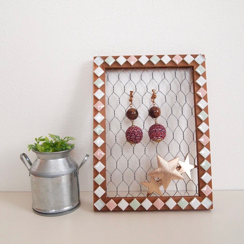 アクセや鍵をディスプレイ収納♪セリア「インテリアメッシュフレーム」がおしゃれえんウチ。