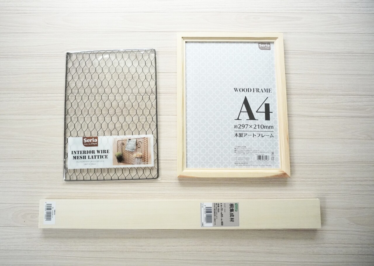 100均セリアの額縁とワイヤーメッシュを合わせるだけ♪簡単リメイクDIY インテリアメッシュボードの作り方雪見日和。
