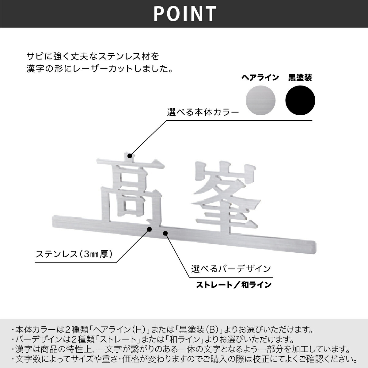 切文字+ライン カラフル・表札 ステンレス 漢字タイプ製品情報宮崎商事株式会社。