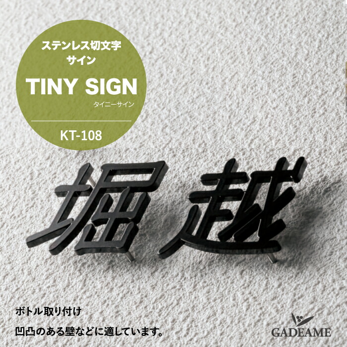 表札 タイニーサイン KT-108 漢字 ステンレス切文字 ボトル取り付け TINY SIGN 切り文字 ステンレス 専用書体 ハウスサイン サインオシャレ シンプル 戸建て 新築 マンション 簡単施工 DIY リフォーム リノベーション 施主支給。