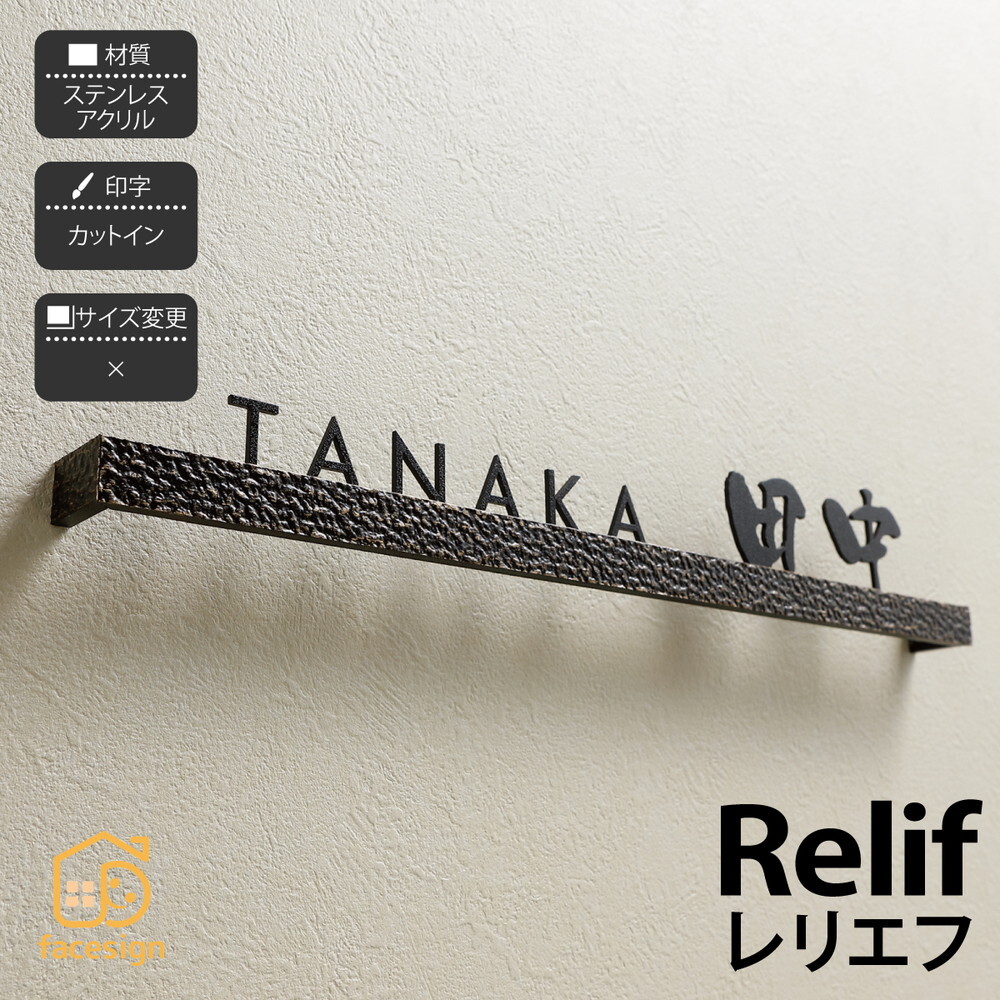表札 切り文字 ステンレス アクリル 戸建 モダン イエロゴ 丸三タカギRelief レリエフ おしゃれ ネーム プレート オーダーメイド 番地住所 二世帯 戸建 マンション アパート 賃貸 門柱 ローマ字 漢字 簡単 取り付け ひょうさつ ヒョウサツ 人気 -表札の専門店。