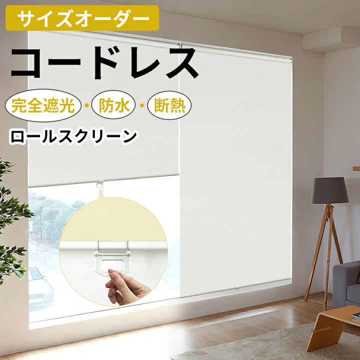 楽天市場 \10%OFFクーポン3回まで利用可能 ロールスクリーン コードレス ロールカーテン オーダー 遮光1級 幅65~180cm 高さ200cmカーテンレール取り付け 間仕切り 小窓 断熱 防寒 防水 14色 目隠し キチン バスルーム 洗濯スペース リビング 浴室 : KeeGo。