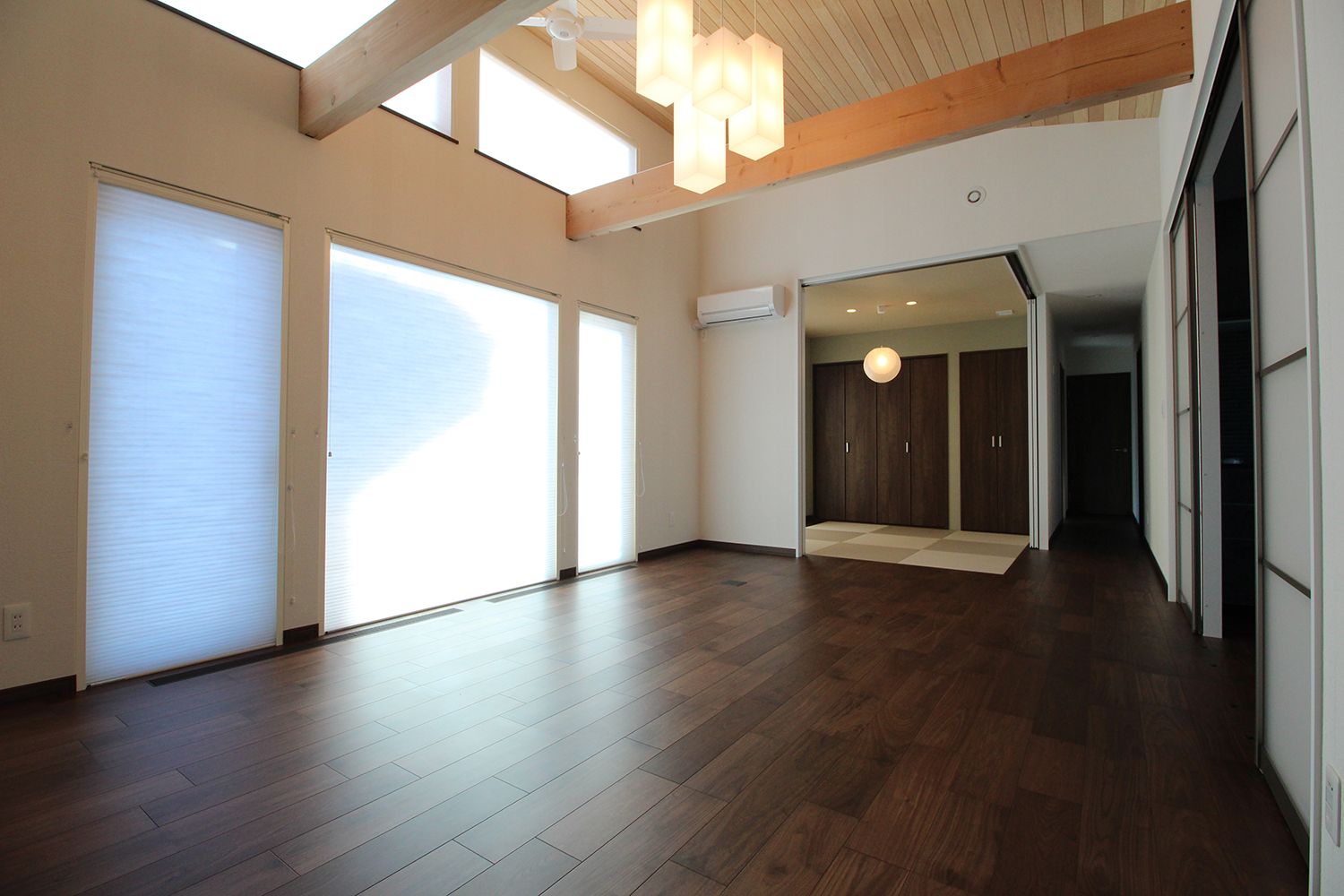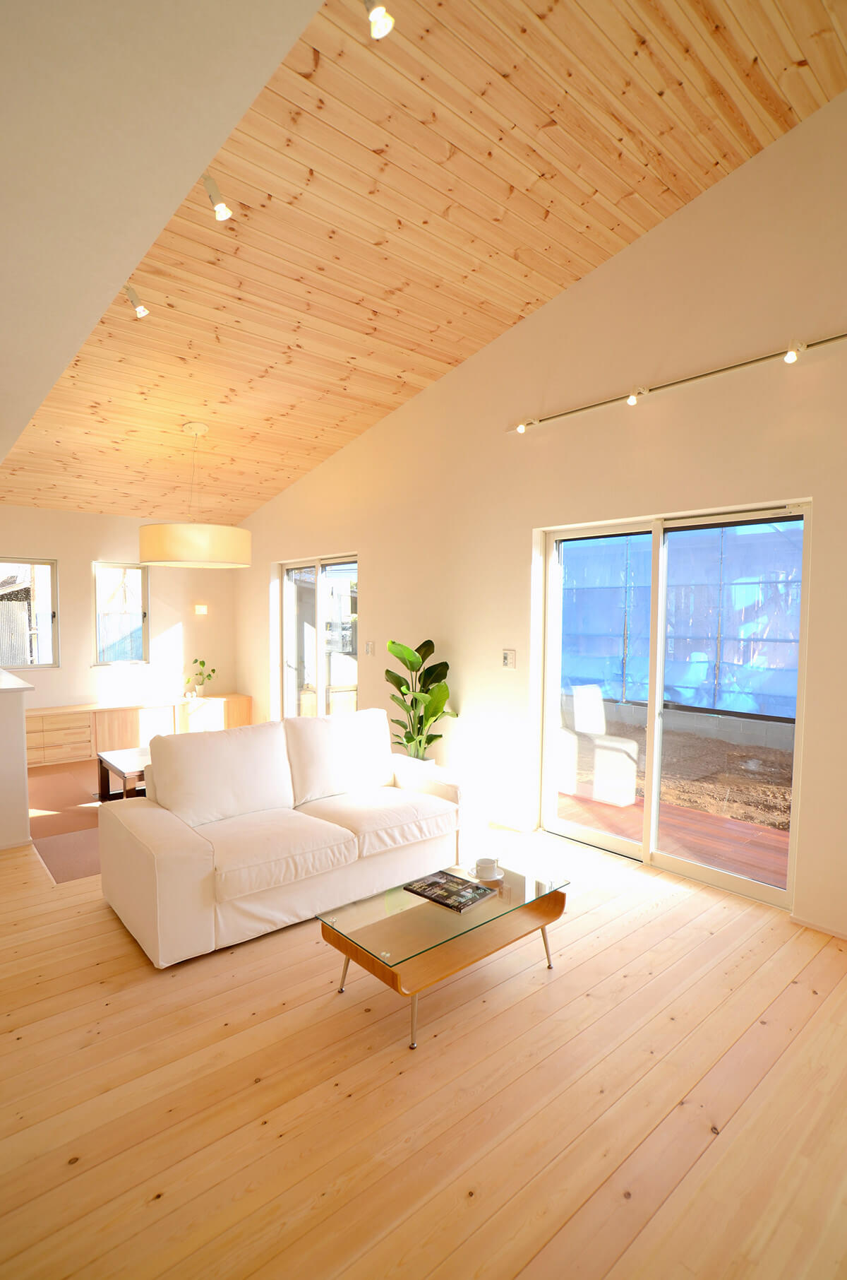 リビング 勾配天井 平屋つくば市で注文住宅を建てるならファミリア株式会社。
