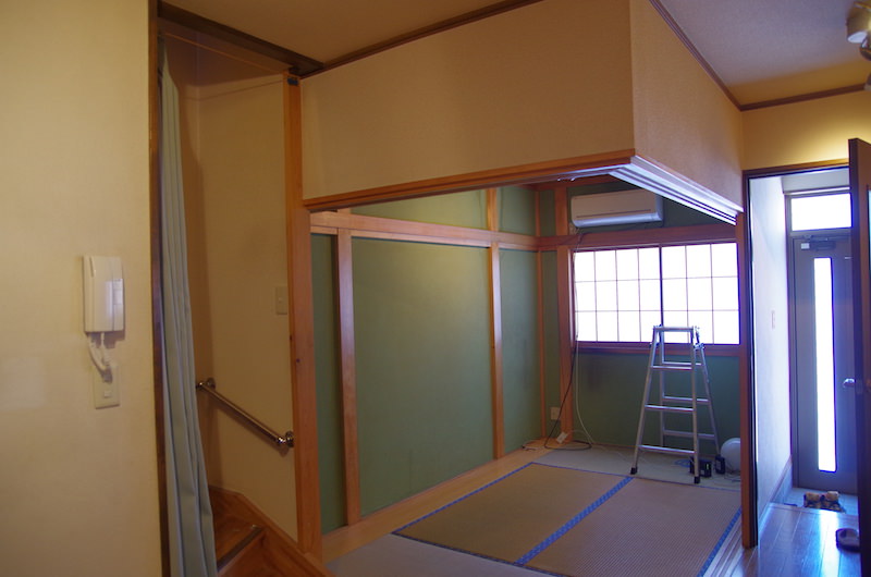 和室2部屋を洋室1部屋へDIYリフォーム一鍼灸院。