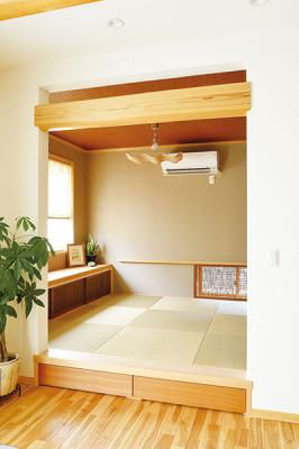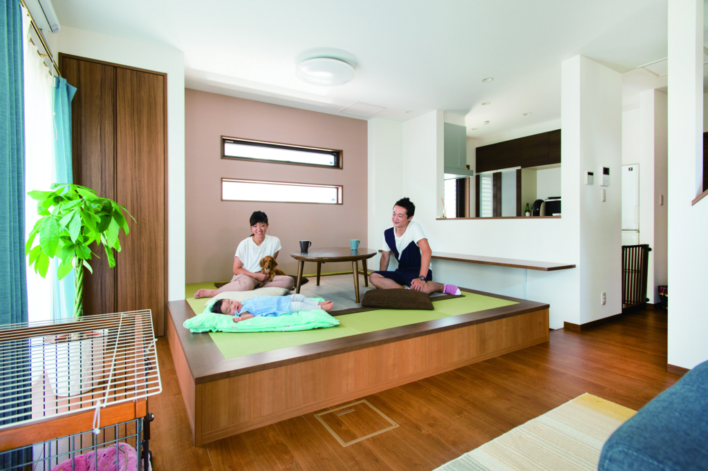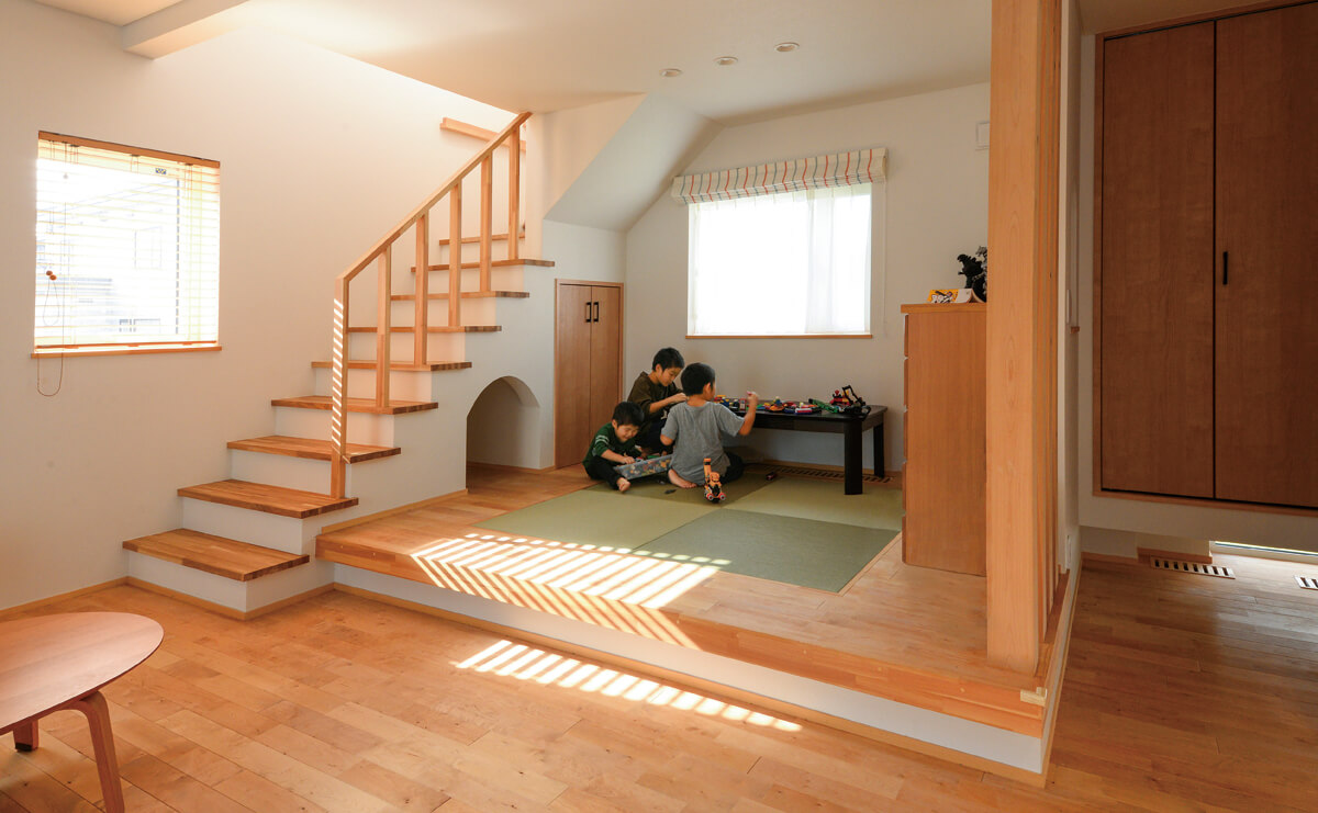 リビングの中の、「小上がり和スペース」 – 浜松市の工務店なら 入政建築 注文住宅を自然素材で建てる。