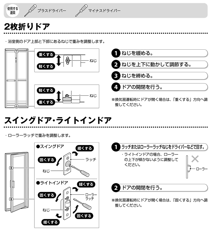 換気扇を運転するとドアのロックが開くのですが・。ドアの開け閉めがしにくいのですが・。 バスルームに関して動画説明あり- ドア バス- Panasonic。