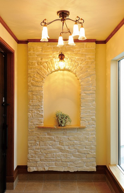 今回は「玄関のニッチ棚」の事例をご紹介します♪ 玄関まわりをおしゃれに演出してみたいけれど、 棚を作るのはちょっとスペースがないそんな場合、「ニッチ棚」はいかがでしょうか。照明を上から当てると ドラマチックで美しい装飾スペース♪ 夜はニッチ棚の柔らかく。