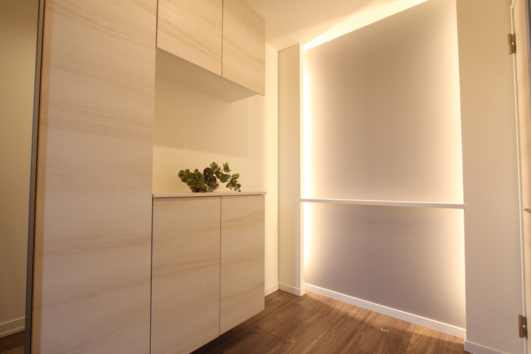 間接照明とニッチを設けた玄関ホール 施工事例:玄関リフォーム 高槻市のリフォームはナサホーム。