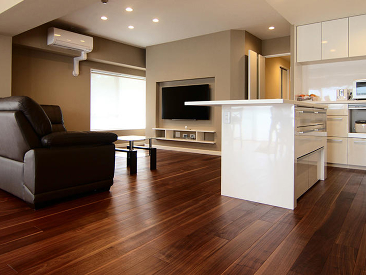 ウォールナットでつくる上質空間。経年変化が魅力の床材。