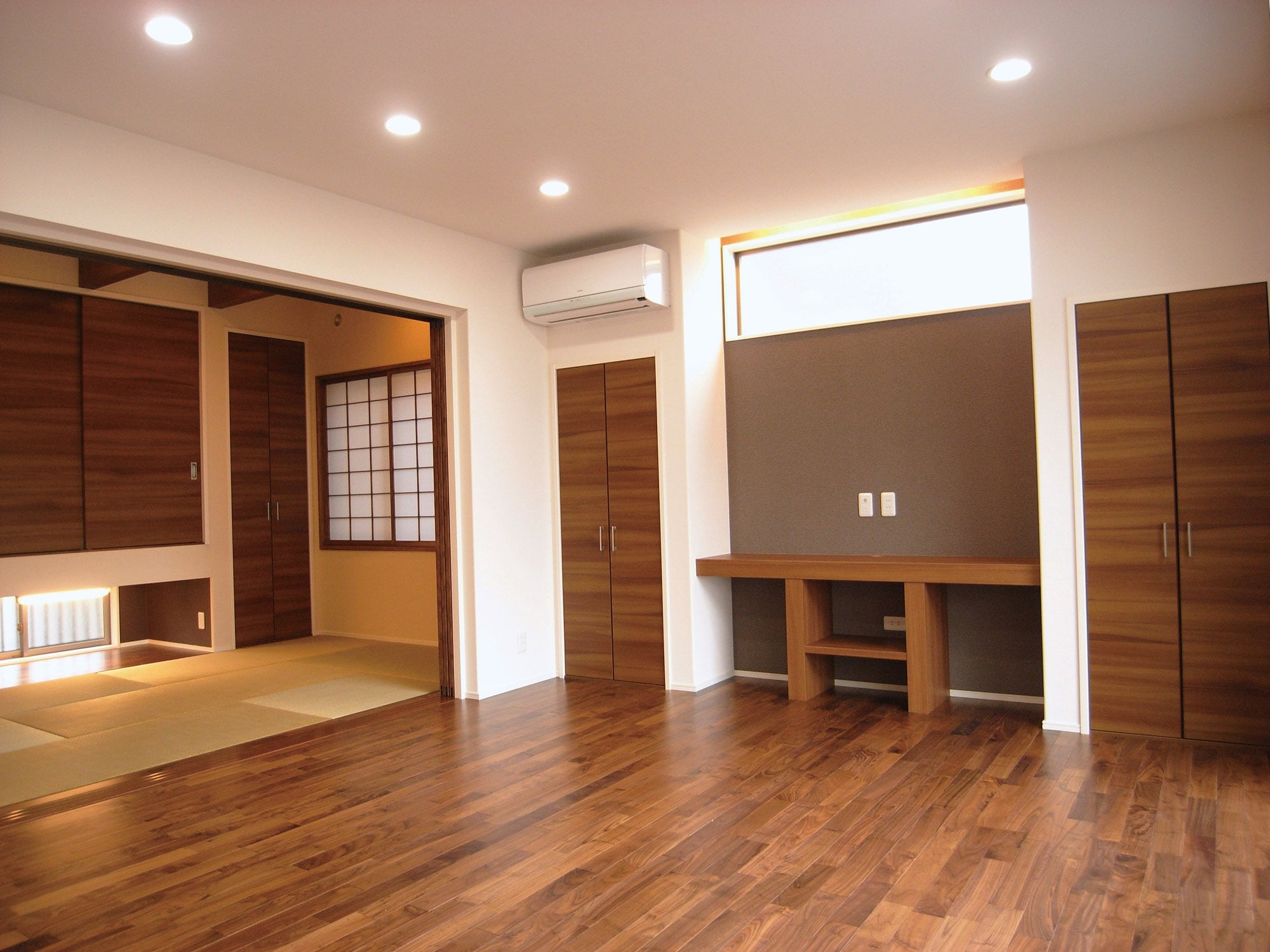 ウォルナット プライウッド 120幅 キャラクターグレード 施工例 - and wood アンドウッド無垢フローリング販売。