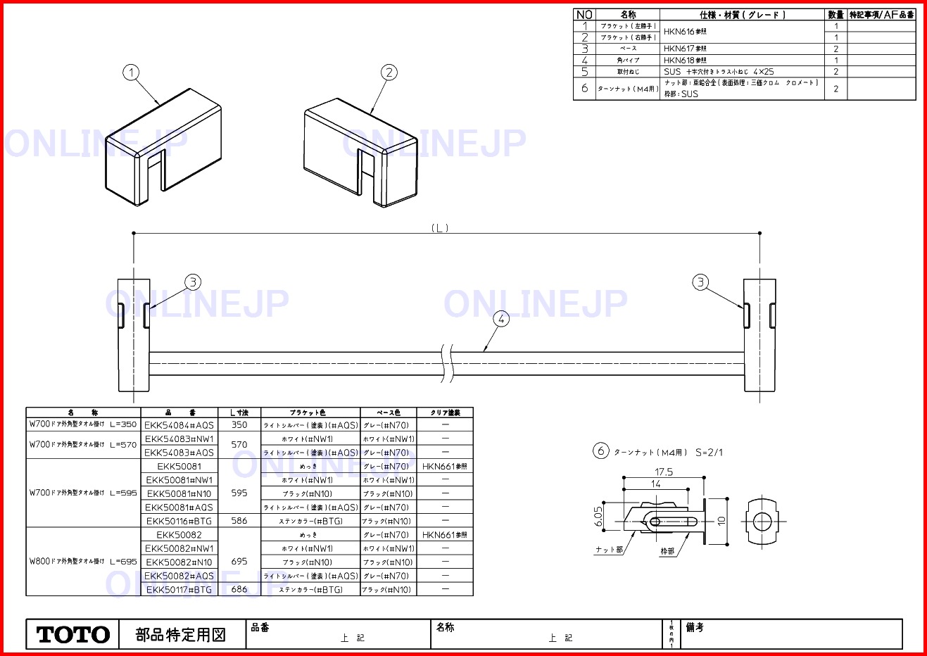 EKK50081 ドア外角型タオル掛W700用L=595TOTO のことなら配管 水道 部品・水まわりの専門店ONLINE JP オンライン。