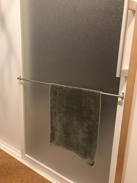 DIY 浴室ドアにタオル掛けを設置ななろぐ。
